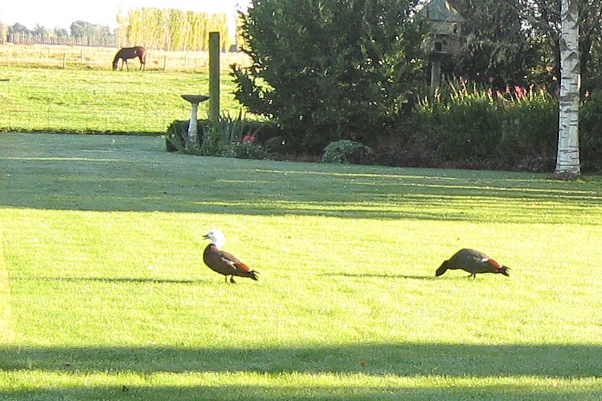 This pair live in the garden they love looking at them selves in the glass doors.They went away to have their baby's they must now be weaned as they are back.